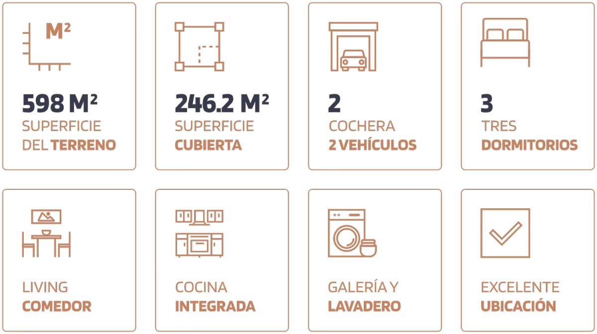 Esta casa de una planta ha sido diseñada para ofrecer amplitud, luminosidad y funcionalidad en cada espacio. Con 246,22 m² cubiertos sobre un terreno de 598 m², combina materiales de primera calidad con un diseño moderno y elegante.